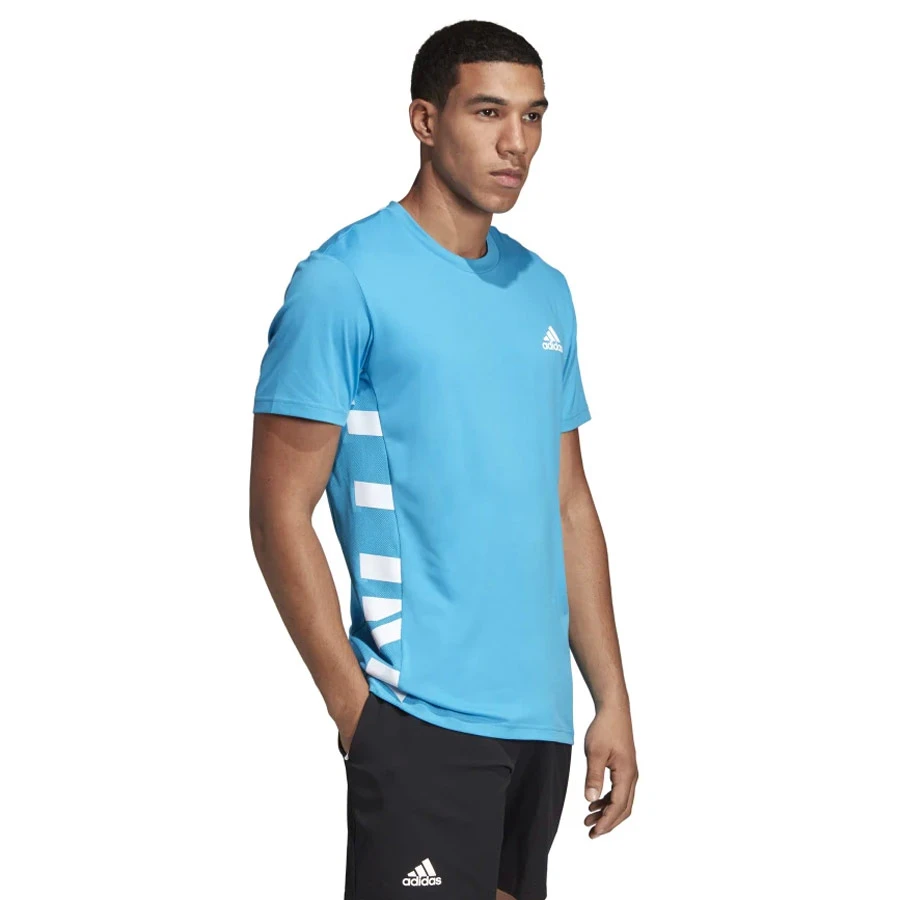 adidas Escouade men’s tee will be worn by Alexander Zverev, Lucas Pouille and Dominic Thiem. The tee is made from soft, sweat-wicking fabric with a soft hand feel and features a print on the right side panel for visual impact. A mesh panel on the other side help keeps you cool. It has a slim, streamlined fit. Features include: