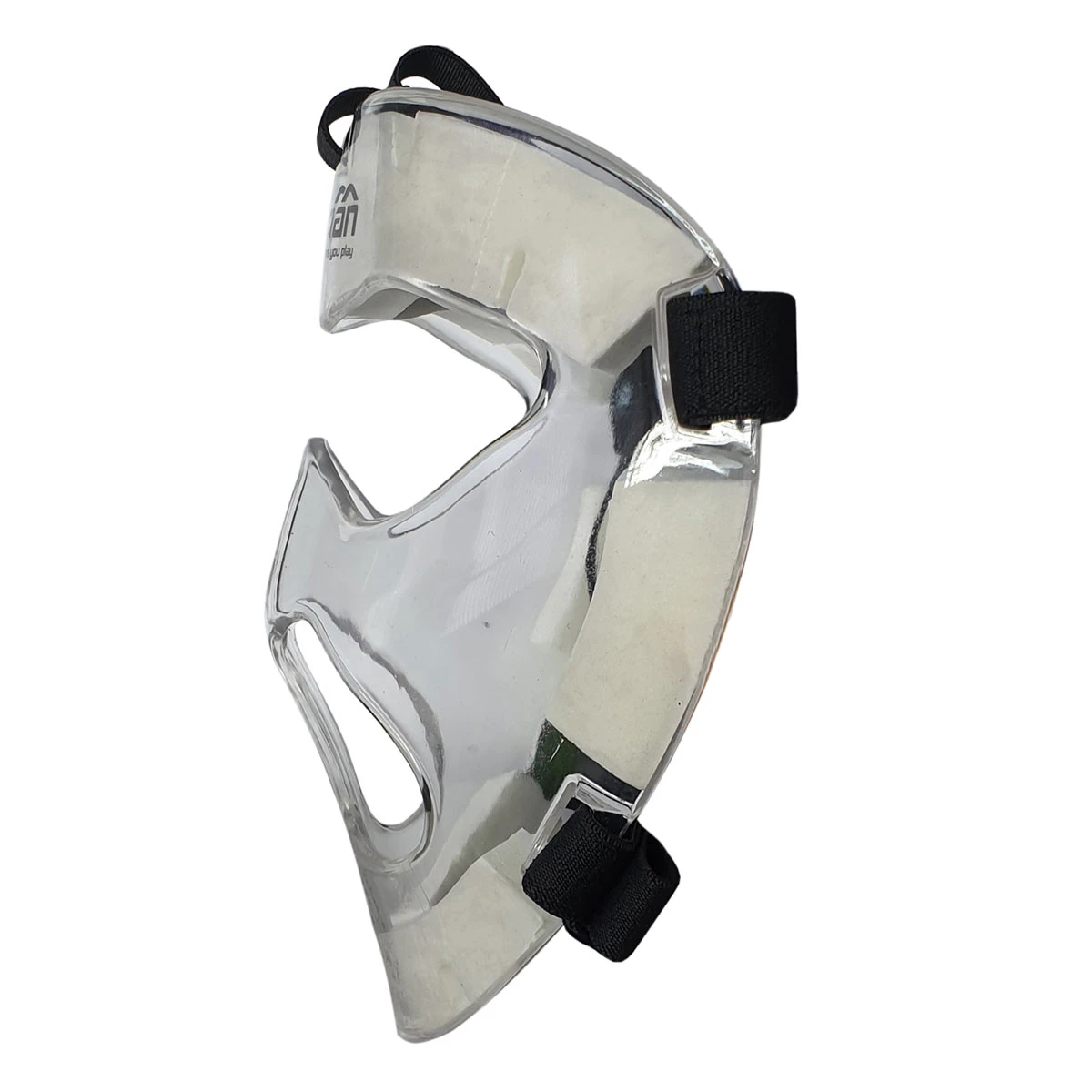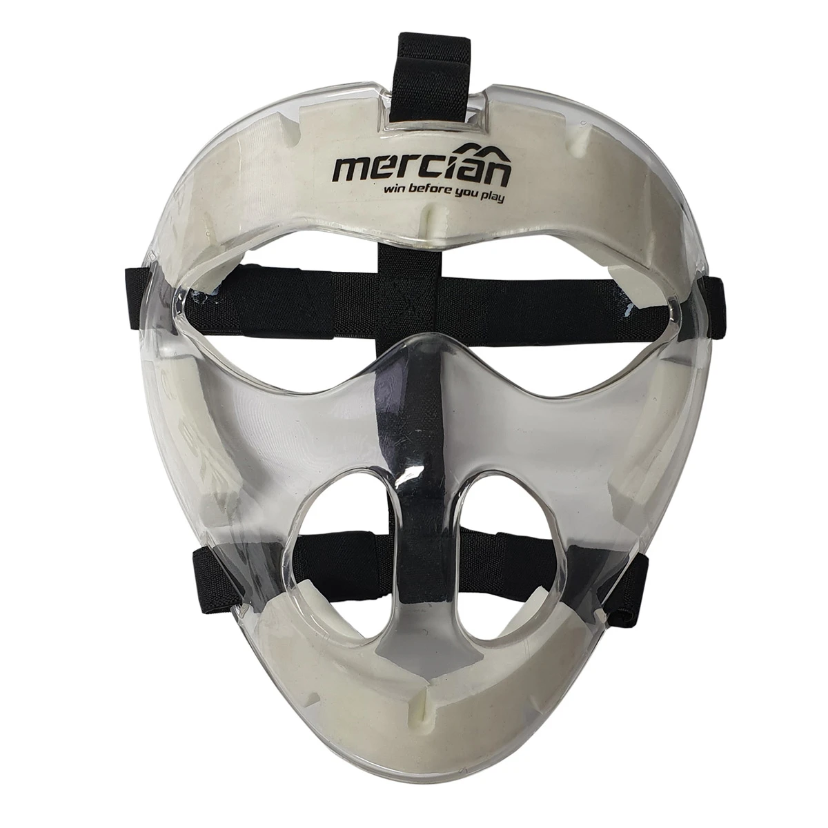 The New Genesis Face mask features a tough transparent plastic mask with a high-density foam backing and adjustable elastic straps.