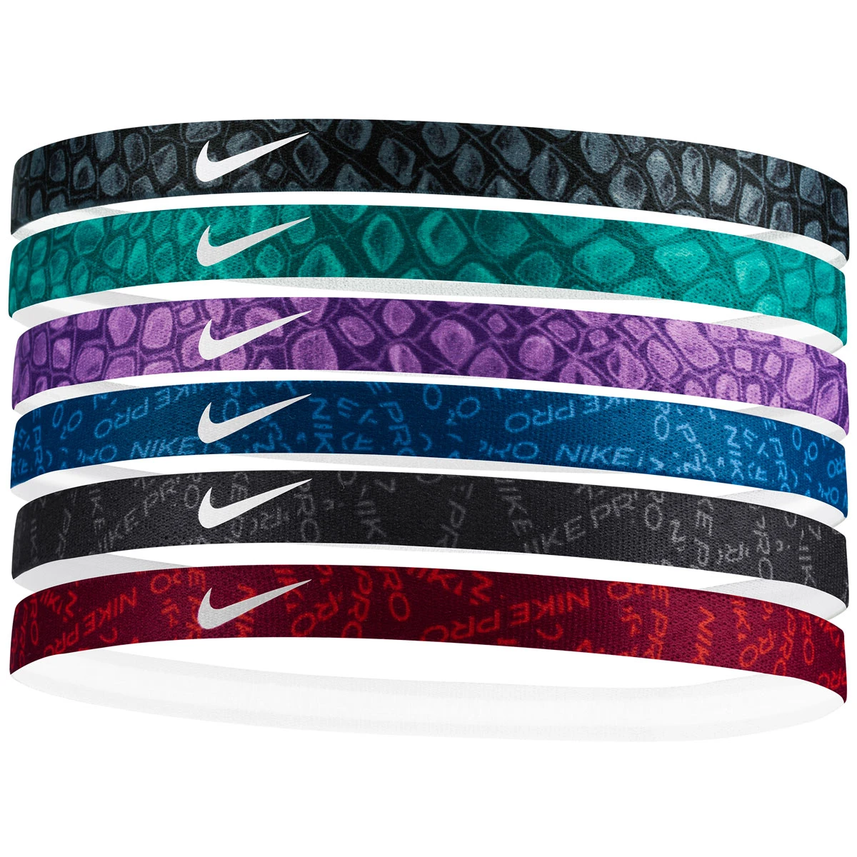 Nike Printed Headbands 6 Pack (Black/Teal/White)