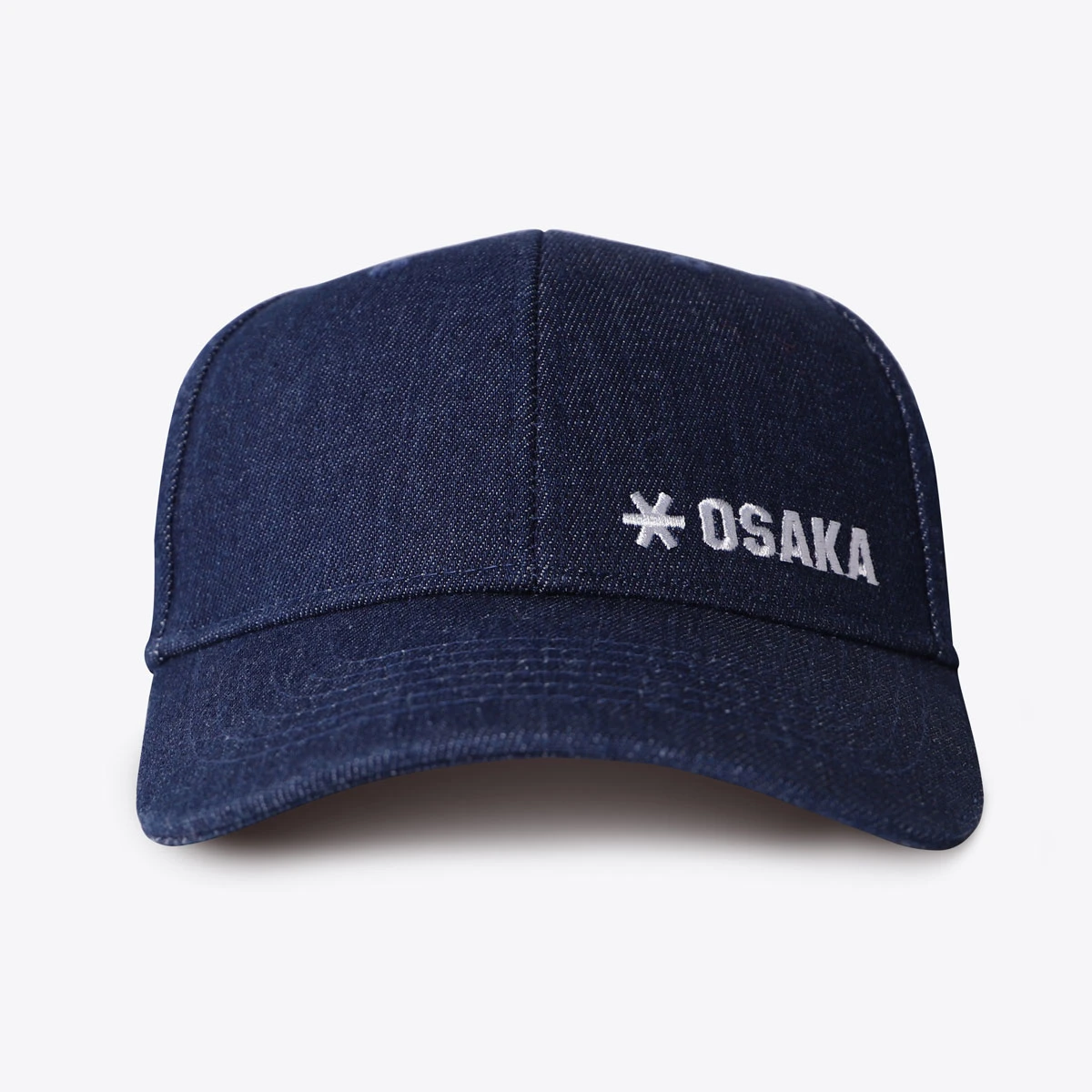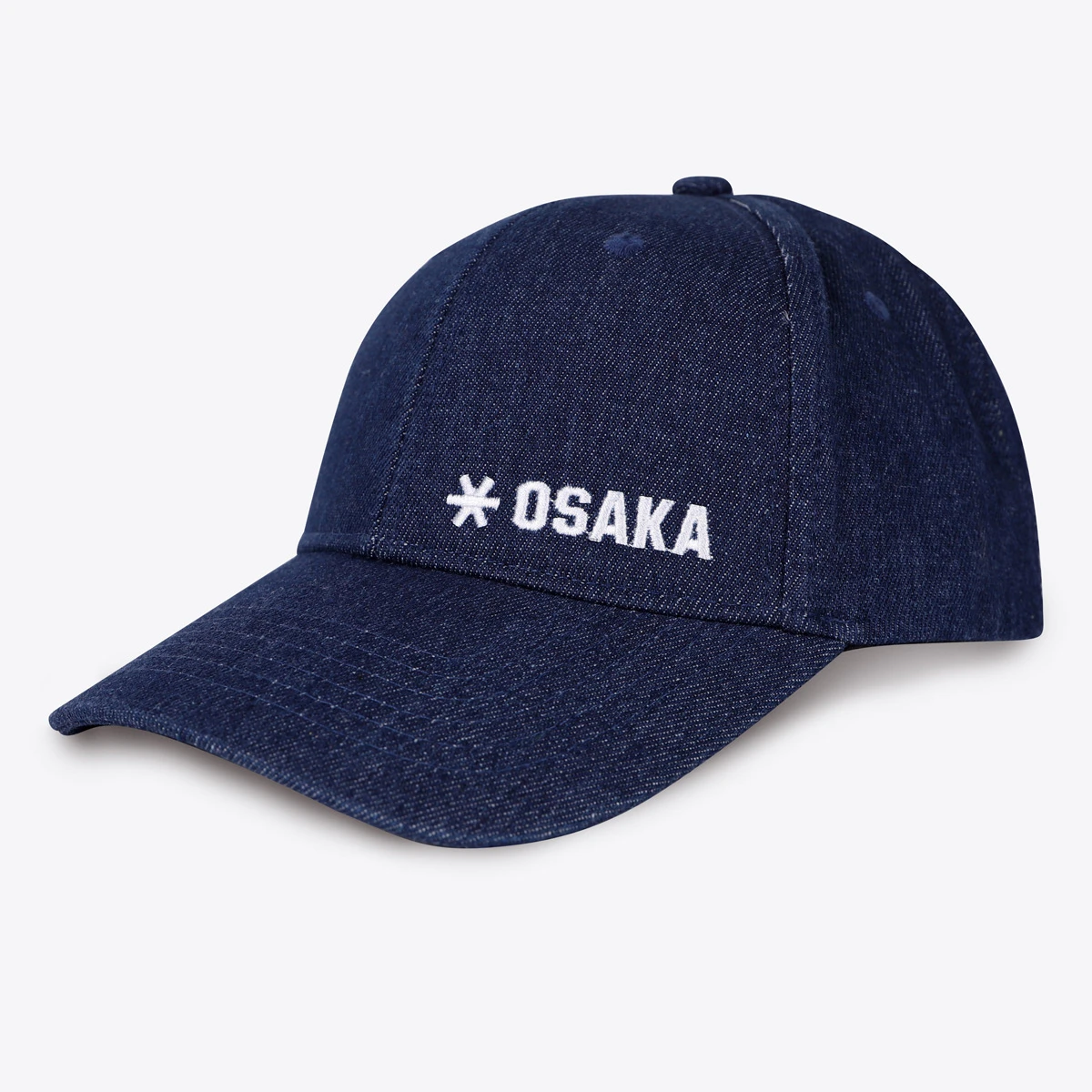 This denim Osaka baseball cap features an embroidered Osaka logo on the front. The cap has an adjustable back.